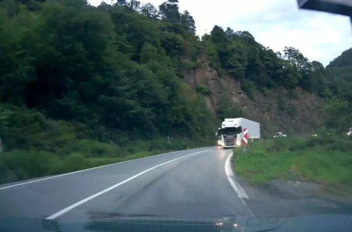 Artvin-Hopa karayolunda kusurlu sollama yaparak bir kazaya sebebiyet vermekten son anda kurtulan tır şoförüne,...