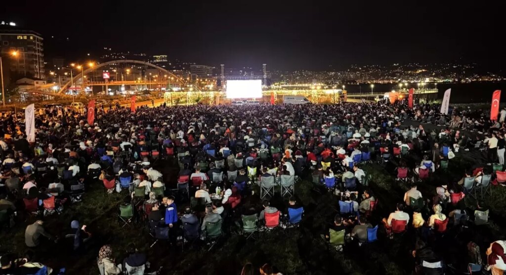 A Ulusal Basketbol Grubu’nun Almanya ile oynadığı 2025 Avrupa Basketbol Şampiyonası final karşılaşması için Rize Belediyesi tarafından Portakallık Mahallesi’ndeki yeşil alana dev ekran kuruldu.